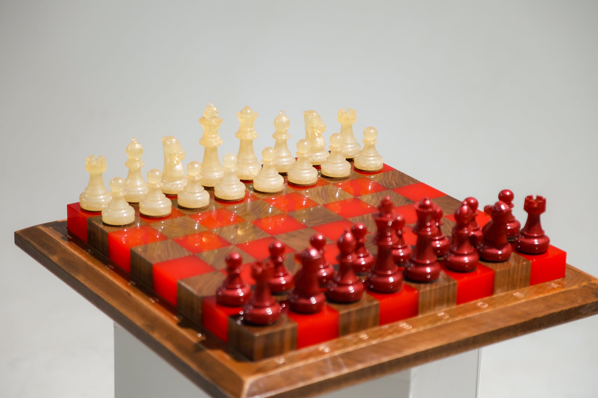 Add a bold, captivating touch to your chess collection with the "Crimson Glow"—an extraordinary chess set from Granadas.